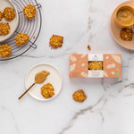 Origin : Με έμπνευση από την Κρήτη και την Μεσογειακή διατροφή δημιουργήσαμε ένα μπισκότο με ελαιόλαδο, φυστικοβούτυρο και επικάλυψη από θρυμματισμένα φιστίκια.