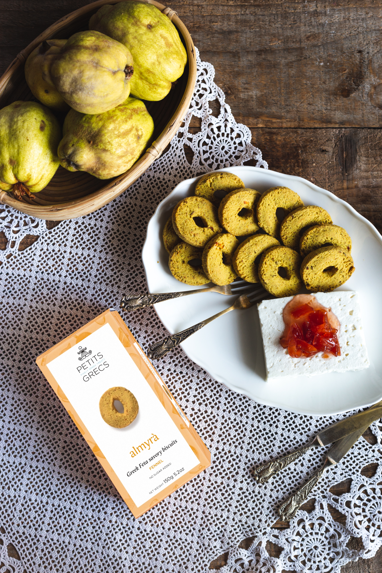Origin: Έμπνευση για τα αλμυρά μπισκότα μας στάθηκαν οι περίφημες πίτες της Ηπείρου. Οι νομάδες βοσκοί της περιοχής αναγκάζονταν να γεμίσουν τις πίτες τους με ότι έβρισκαν στη φύση γύρω τους. Και βέβαια ποτέ δεν έλειπε το τυρί από τις παρασκευές τους, καθώς το προμηθεύονταν από τα ζώα τους. Έτσι γεννήθηκαν όλες αυτές οι αμέτρητες παραλλαγές ηπειρώτικων πιτών.